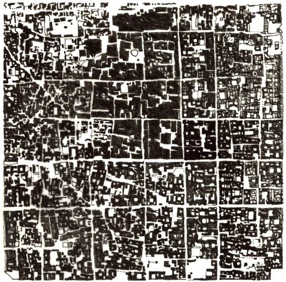 6. Plan of Jaipur. Figure-ground drawing by Michael Tawa, after Vidyadhar. City Plan of Jaipur. Jaipur State, Undivided India, 1734. Vastu Shilpa Foundation/Vivek Nanda.