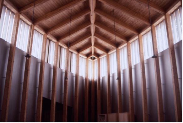 Returning to Hartman and his `richness of properties,' consider this architectural project—Peter Zumthor's Saint Benedict Chapel, Sumvigt (1988). The building brings together multiple semantic and tectonic registers. Scanning fairly quickly these include a geometric dimension—the plan form is a Vesica Pisces, which symbolically represents the intermediate region between two intersecting circles and is identified with Christ; an atmospheric dimension—the solid wall occludes any sense of the outside, other than a continuous highlight that causes the interior space to expand and contract depending on ambient light conditions and weather outside; a scriptural dimension, in line with the Old Testament descriptors of the Temple as a fabric tent or shade (Greek skene)—the columns, which normally uphold the roof and visually rise from the ground, are detailed so as to appear to hang from the roof, and the whole space to be suspended from above; a liturgical dimension, placing the site of worship between divinity and humanity, sacred and secular—the floor is detailed so as to appear as a hovering plane levitating between ground and roof; a metaphorical (and symbolically nautical) dimension, expressing the church as a vessel conveying the believer to heaven—the roof is detailed to appear as an inverted ship's carcass; a technical and material dimension, according to which the weight and gravity of the architecture is dematerialized—the thickness and base of the surrounding silver wall is effectively occluded and seems to hang in the space like a fabric veil.